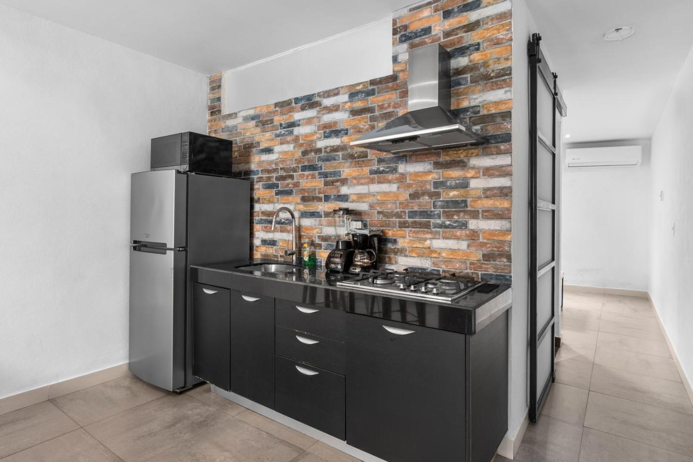 One-Bedroom Apartment. The apartment has 1 bedroom and 1 bathroom with a shower and free toiletries. Guests can make meals in the kitchen that has a stovetop, a refrigerator, kitchenware and a microwave. The apartment offers air conditioning, a tea and coffee maker, a wardrobe, a safe deposit box, as well as a flat-screen TV. The unit has 1 bed. ;